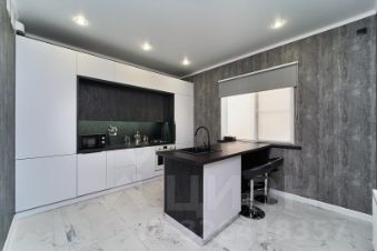 1. просторная кухня с островом, на котором расположена рабочая зона и раковина, и необходимым набором бытовой техники (холодильник, газовая варочная панель, посудомоечная машина, микроволновая печь);