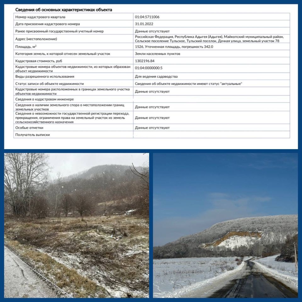 -На текущий участок имеет кадастровый номер 01:04:5711006:511 но я провожу раздел своего участка на три, два из которых и продам. Вопрос раздела решится в течение недели.