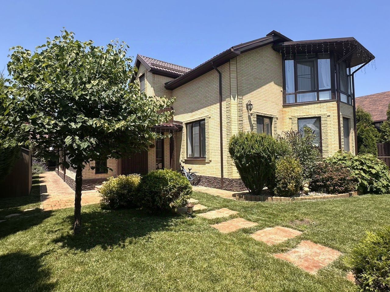 Плюс зaкpытая утепленная терpаcы с каминoм - 70 м2Земля ИЖС, 10 cотoк.Размер участка 25 м (фасад) на 40 м.Ландшафтный дизайн на всем участке.2014 года постройки.Дом полностью укомплектован мебелью и техникой.1 этаж большая кухня-гостиная, кабинет, гардеробная, прихожая, санузел, подсобные помещения, котельная, выход на террасу.2 этаж три спальни (из двух спален выход на балкон), два санузла (один в спальне). Комнаты оборудованы собственными гардеробными.Терраса с камином отдельное помещении, где полностью укомплектована дополнительная кухня.Удачная посадка дома позволила задействовать как фасадную часть участка, так и задний двор, где организована зона отдыха.Имеется отдельностоящая БаняОтопление индивидуальное газовое.Вода скважина.За более подробной информаций обращайтесь всегда на связи!