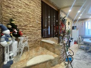 ДОМ: одноэтажный, кирпичный, фасад 12 м, площадь 125 кв м ( по документам 76,3), 1985 год постройки. Два входа, кухня-столовая (25 кв м), четыре изолированные комнаты, два санузла, просторная ванная комната.