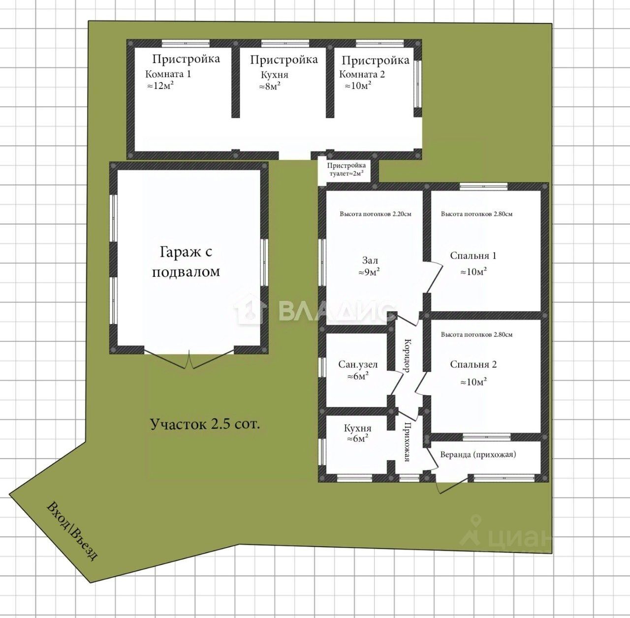 Просторный кирпичный гараж с подвалом.