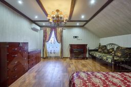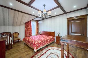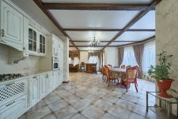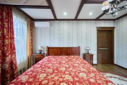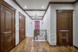 Ремонт выполнен по дизайн проекту, из качественных материалов: мраморная лестница с красивой ковкой перил, дубовые двери и мебель, импортная с/техника. Выдержана цветовая гамма в текстиле и мебели.