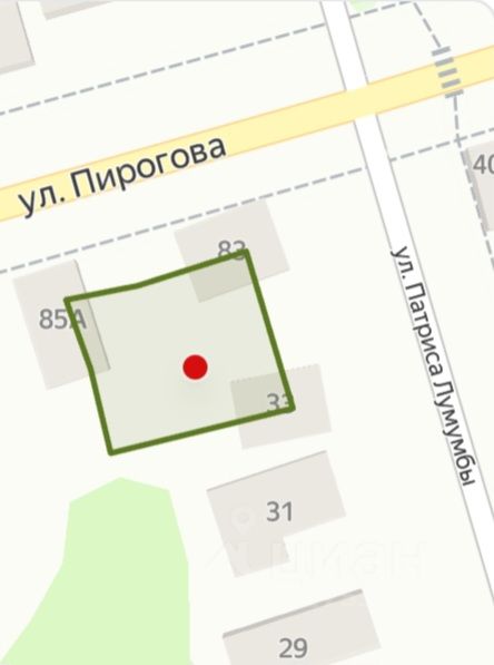 В продаже угловой участок 421м² правильной формы, на пересечении улиц Пирогова/Патриса Лумумбы.