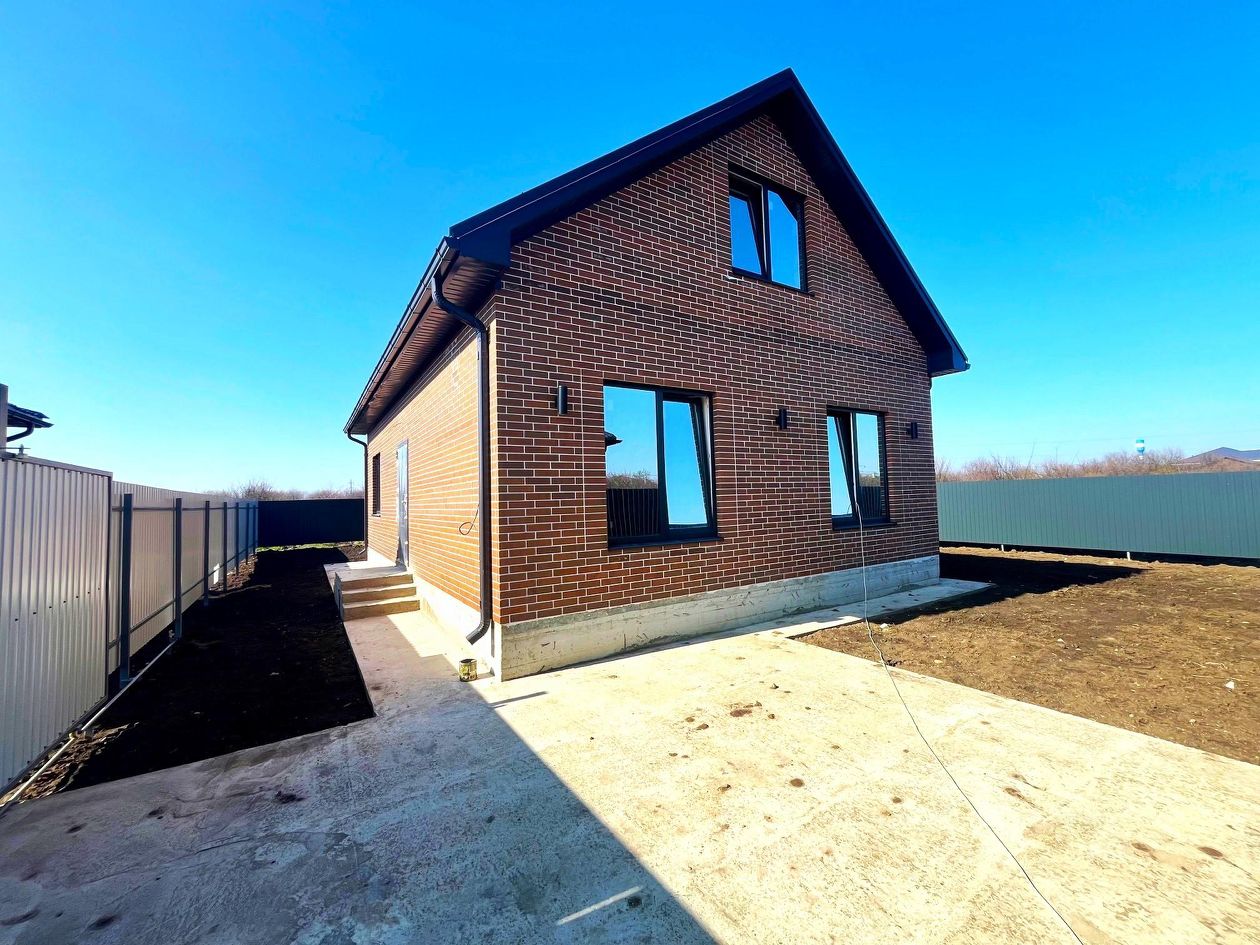Коттедж с мансардным этажом возведен на свайно-ростверковом фундаменте, материал стен — газоблок, наружные — облицовочный керамический кирпич, металлопластиковые окна, кровля — металлочерепица, входные двери.