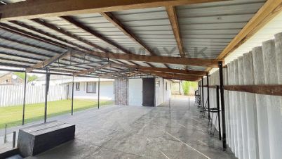 Двор бетонированный, с навесом и хоз. постройками.