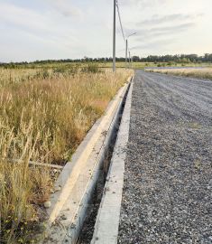 В данный момент участок находится в поле, где нет пока дороги и коммуникаций, но на соседних улицах уже проложена широкая дорога, засыпанная щебнем, установлены ливневки, бордюры, проложен тротуар, как это показано на фото). Проведены коммуникации. Работы ведутся, со временем, вдоль нашего участка тоже будет дорога и коммуникации и цена соответственно будет выше.