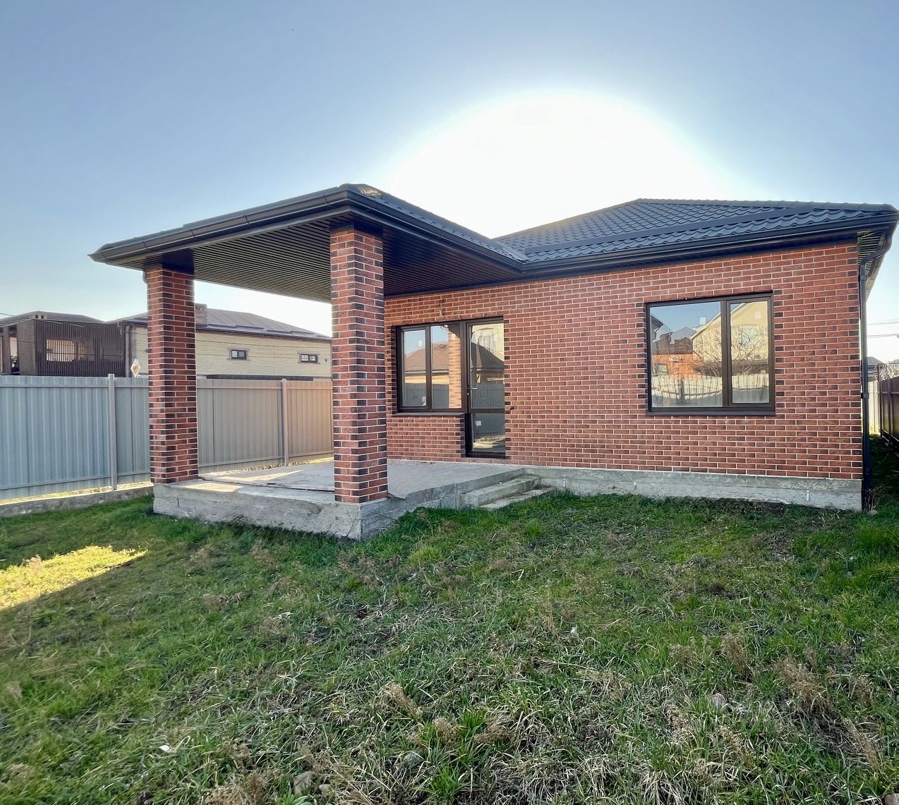 Хорошая локация, жилой массив, соседние дома — современные коттеджи.