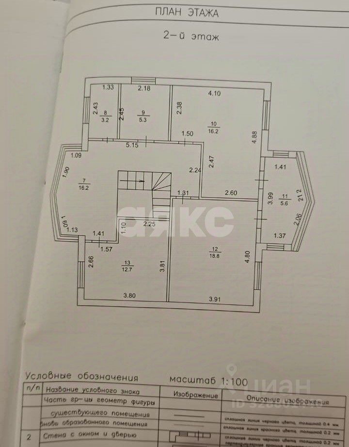 На втором этаже расположены 3 комнаты (18,8м2, 16,2м2 и 12,7м2) подсобное помещение, совмещенный санузел (5.5м2).