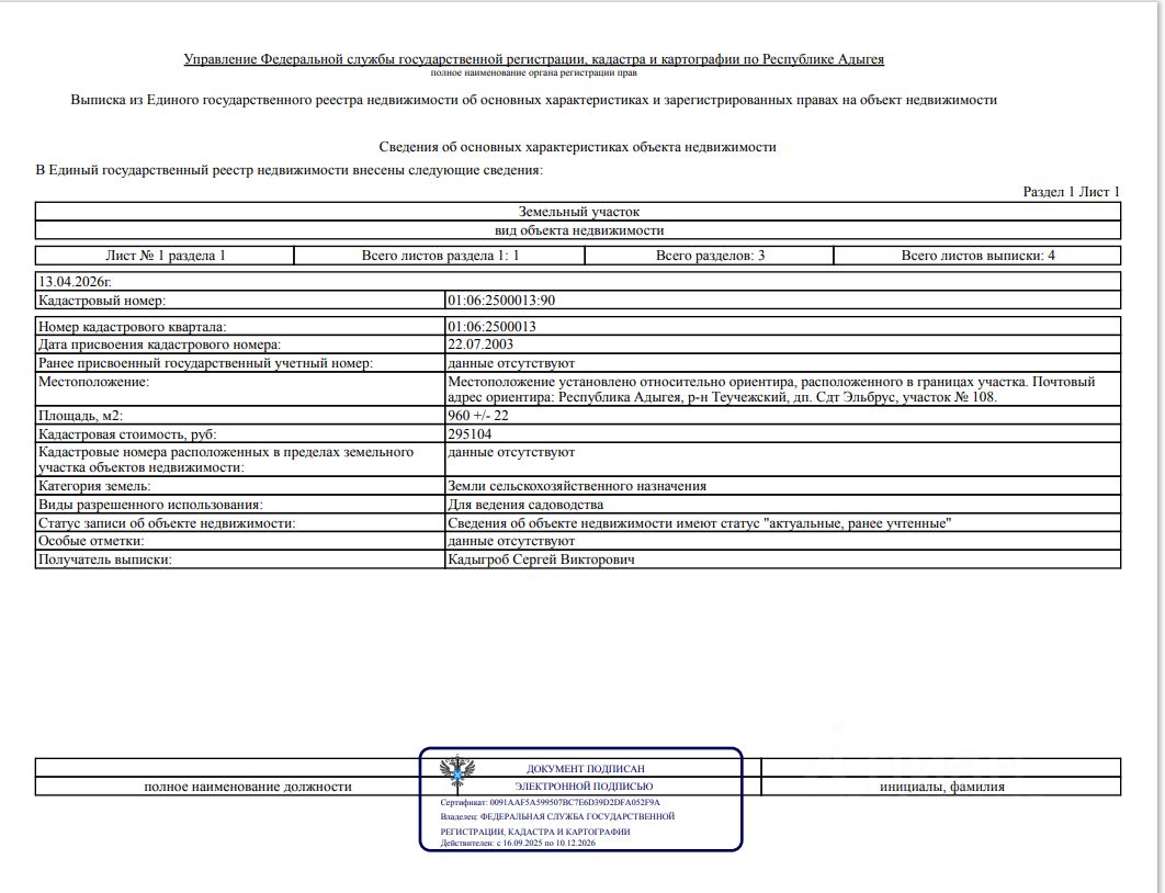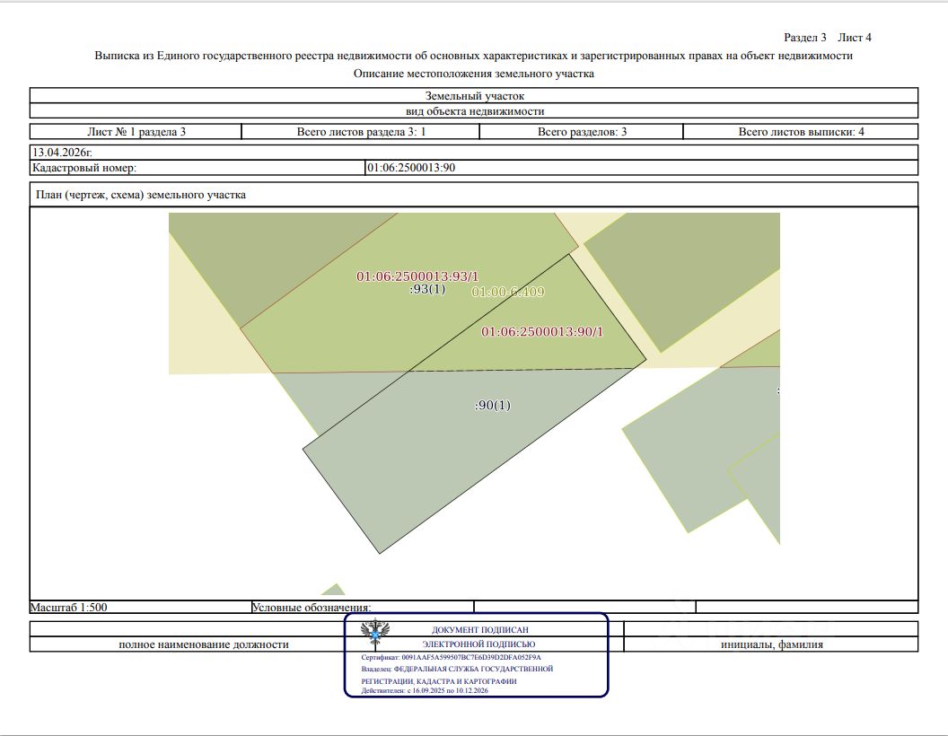 Кадастровый номер: 01:06:2500013:90.