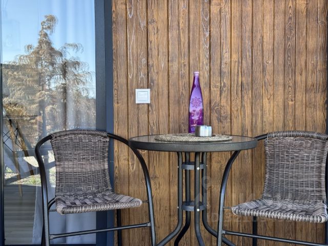 - кухню-гостиную с полным набором необходимого инвентаря и техники (плита, кофемашина, электрочайник, микроволновая печь, холодильник, посуда);