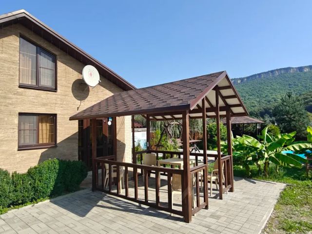 Вас приветствует вилла Дыхание Адыгеи. Выбирая наш дом вы получаете: - свой теплый бассейн, наполненный родниковой водой; - закрытый приватный двор с беседкой и камином; - просторный современный дом на 3 спальни оборудованный всем необходимым для вашего отдыха; - выход к реке Белая и подвесному мосту; - индивидуальный банный чан ( оплачивается отдельно); - виды на гору Уна-коз и вулкан Гуд. Стоимость проживания зависит от сезона, количества человек. Для бронирования оплачивается задаток, который не возвращается за неделю до заезда. Дом оборудован всем необходимым для комфортного проживания: беседка с камином, постельное белье (сатин), посуда, теплые полы, туалетные принадлежности и многое другое. В доме 3 спальни, в каждой по двуспальной и односпальной кровати. Температура в бассейне зимой около 33 -35 градусов, летом 28-30. Если вы цените красоту природы, тишину и уют, то Вам непременно к нам. Территория нашей виллы закрытая, уединенная и приватная, никто не помешает вашему отдыху. Наше расположение самое живописное: подвесной мост, берег р. Белая и великолепная панорама на горы. Достопримечательности вокруг нас: Хаджокская теснина - 7 км, канатная дорога - 1 км, плато Лаго-Наки и Азишская пещера - 25 км, монастырь - 15 км. Экскурсии, джипинг, квадроциклы и рафтинг, забирают от нас и привозят Вас обратно. Заезд с 14-00, выезд до 11-00. Ранний заезд и поздний выезд по согласованию, платный. Взимается страховой залог, возврат на карту гостя после уборки, при условии невозможности принять дом во время выезда