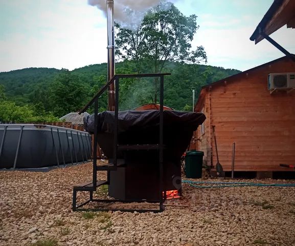 В нашем дворе стоит банный чан для принятия спа-процедур (эта услуга в стоимость аренды не входит). На летний сезон ставим бассейн .