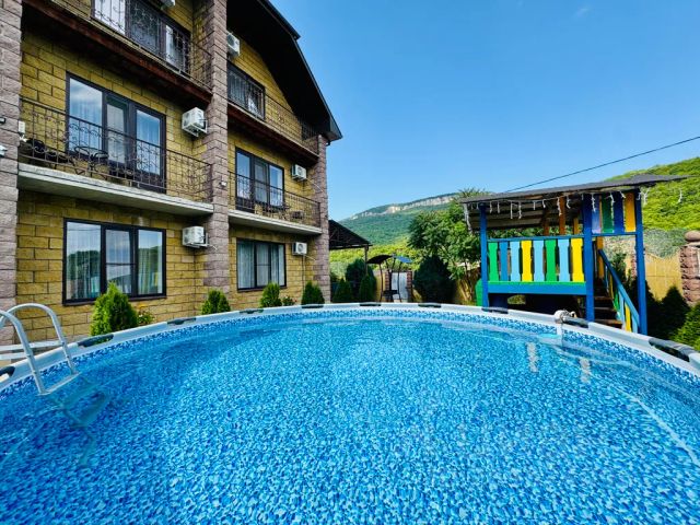 Загородный отель "Даховская Слобода" располагается в станице Даховской. Этот отель находится 2 км от центра города, в центре туристических маршрутов: Лаго-Наки, Гузерипль, Хаджохская теснина, водопады Руфабго. Рядом с отелем — Савранская Канатная Дорога, Даховский мост и Казачий камень (Девичий). В отеле есть бесплатный Wi-Fi. Если гости путешествуют на машине, припарковаться можно будет на парковке рядом. Номерной фонд позволяет разместить единовременно более 180 гостей. Проводится ежедневная уборка и смена постельного белья раз в 2 суток. В стоимость всех номеров включён завтрак и ужин "шведский стол". На территории отеля работает детский клуб. Дети могут провести время без присмотра родителей и насладиться разнообразными активностями как на открытом воздухе, так и в игровой комнате. Детский клуб предлагает мастер-классы, дискотеки и развивающие игры для детей от 4 лет. Время работы клуба с 8:30 до 22:00. Аниматоры проводят интересные программы, которые развивают фантазию, логику и социальные навыки детей. Если родители собрались в горы и боятся, что для их малыша это слишком сложный маршрут, они за дополнительную плату могут заказать услуги няни. В отеле есть единственный в Адыгее SPA-комплекс в виде средневекового замка — четырёхэтажное здание из красного кирпича получило название "Унэдах", что в переводе с адыгейского языка означает "красивый дом". Там можно попариться в сауне и хамаме, и сделать фото в подогреваемом бассейне с панорамным видом на Кавказский хребет. Гостям основной территории также доступен горячий бассейн и сауна с панорамным видом на хребет Уна-Коз. Есть зона джакузи, рядом с бассейном расположены шезлонги, на которых можно позагорать, предоставляются полотенца для купания. Бассейн, сауна, джакузи, шезлонги и полотенца для купания — предоставляются для проживающих бесплатно. В отеле оборудована бесплатная освещённая парковка под видеонаблюдением. Ресторанный комплекс включает в себя ресторан а-ля карт "Даховская Слобода" и ресторан шведской линии, где проходят завтраки и ужины. В отеле можно провести торжественное или деловое мероприятие вместимостью до 50 человек. Зал оснащён мультимедийной техникой. Также для гостей организуется трансфер, экскурсии, конные прогулки и рафтинг. К услугам гостей 41 номер категории "3 звезды" и 26 номеров категории "4 звезды". В каждом номере есть функциональная мебель, санузел, сплит-система, холодильник, фен, телевизор. Загородный отель "Даховская Слобода" располагается в станице Даховской. Этот отель находится 2 км от центра города, в центре туристических маршрутов: Лаго-Наки, Гузерипль, Хаджохская теснина, водопады Руфабго. Рядом с отелем — Савранская Канатная Дорога, Даховский мост и Казачий камень (Девичий). В отеле есть бесплатный Wi-Fi. Если гости путешествуют на машине, припарковаться можно будет на парковке рядом. Номерной фонд позволяет разместить единовременно более 180 гостей. Проводится ежедневная уборка и смена постельного белья раз в 2 суток. В стоимость всех номеров включён